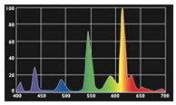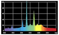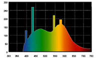 由图示可见,三基色荧光灯管主要含有 RGB 三种光谱成份,它的显色指数一般为 70%-80% ,只能用于普通照明,不能用来观察颜色。多基色荧光灯管除了含有 RGB 三种光谱成份外,还含有一些其它的光谱成份,它的显色指数一般为 90% 左右,可以用在服装商店,珠宝店,超市进行一般的颜色观察。全色谱荧光灯管包含有大部份的太阳光谱成份,它的显色指数一般为 98% ,可用作专业的色彩匹配,是观察颜色的最理想的光源。